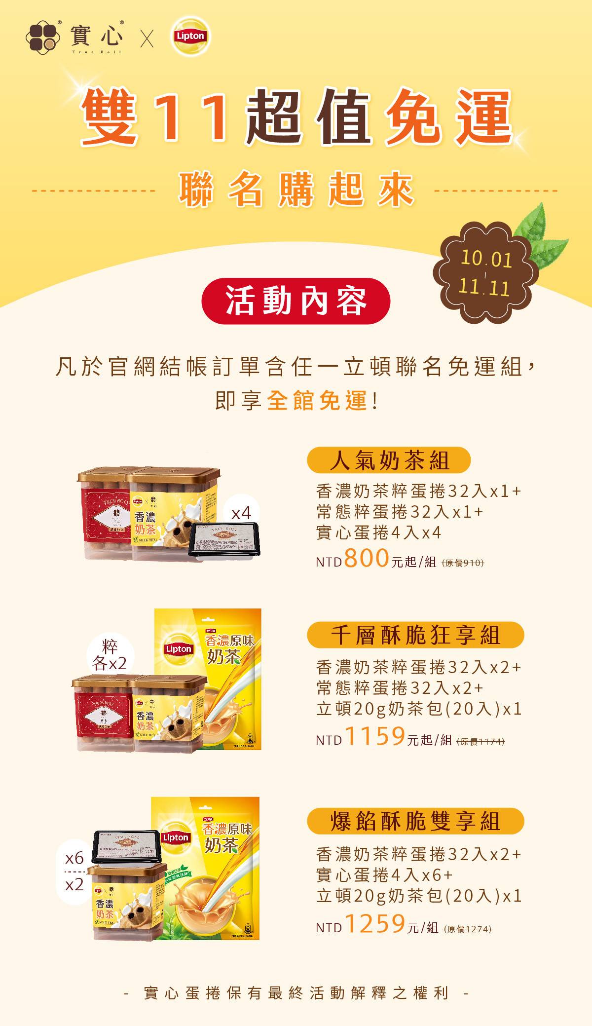 【立頓聯名免運組】人氣奶茶組(香濃奶茶粹蛋捲x1+粹蛋捲32入x1+實心蛋捲x4)