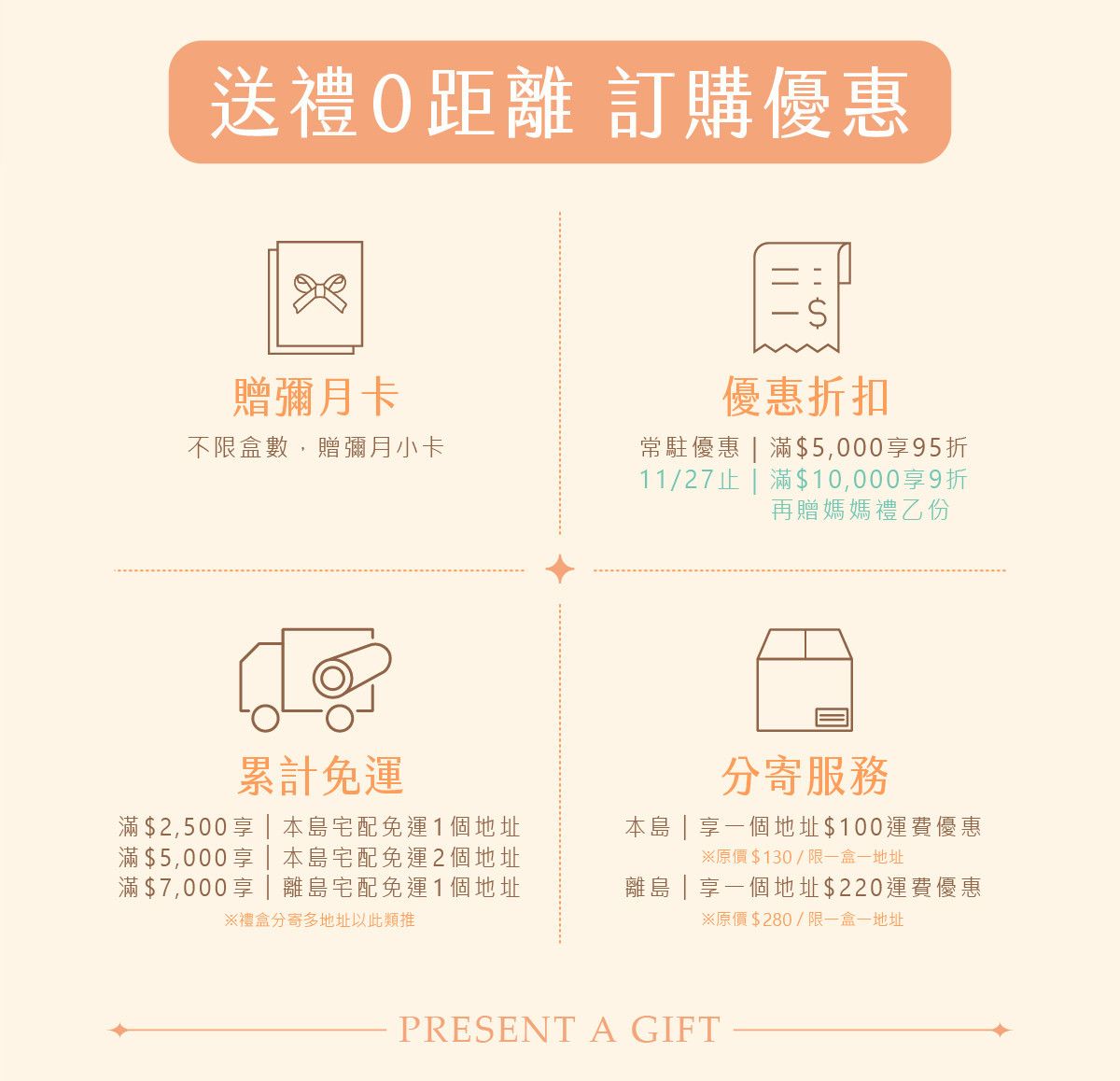 彌月禮盒,憑媽媽或寶寶手冊可申請每款彌月禮盒各一組【彌月禮盒試吃】。