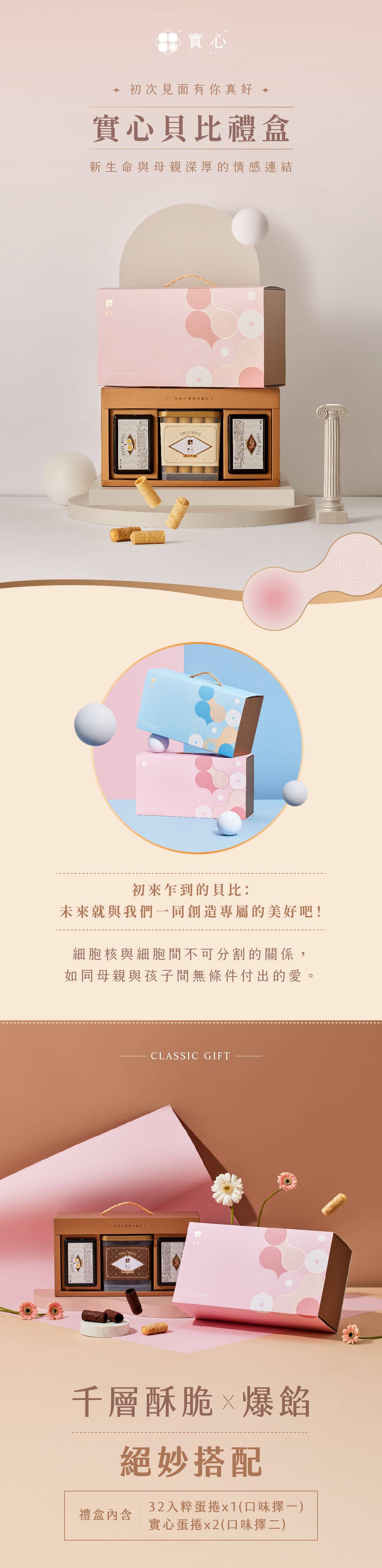 彌月禮盒-貝比雙蛋捲-柔和粉(粹蛋捲32入x1+實心蛋捲4入x2)