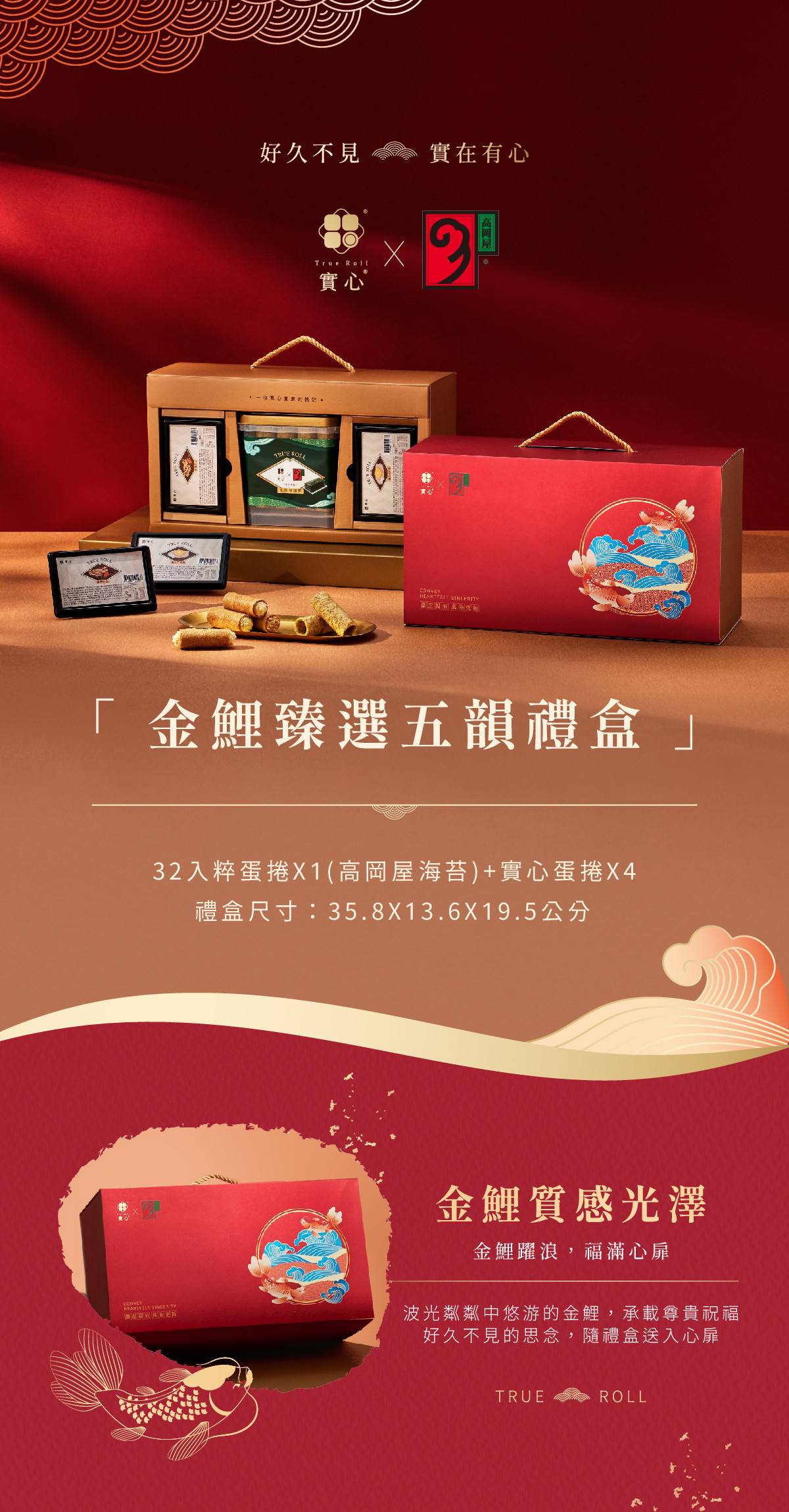 【高岡屋聯名】金鯉臻選五韻禮盒(粹蛋捲32入x1+實心蛋捲4入x4)