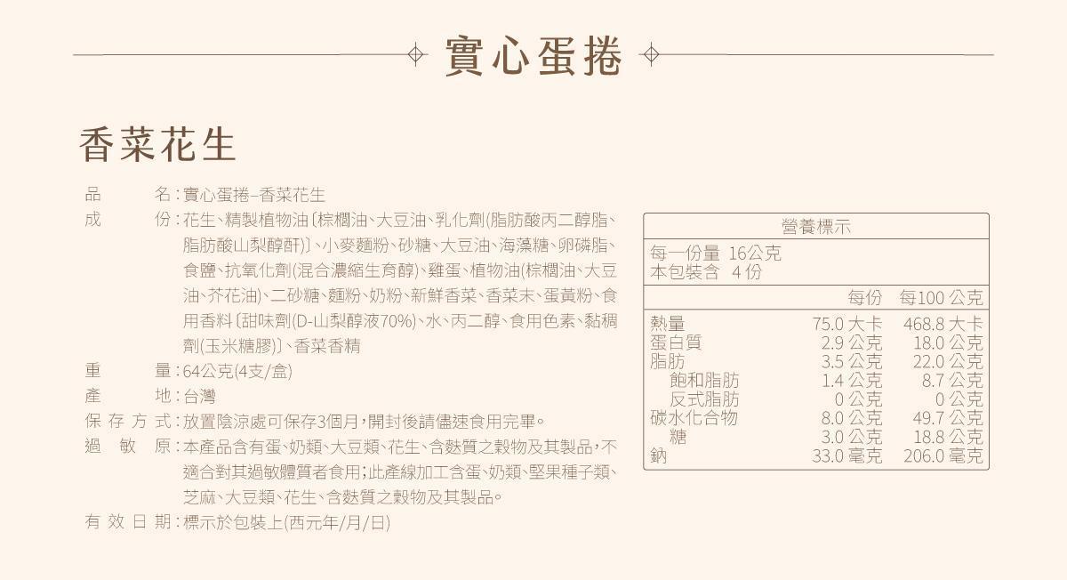 香菜花生-醇濃花生入魂,香菜驚艷絕配,過年禮盒|實心蛋捲-一份真心實意的惦記|台中十大伴手禮-金口碑獎|彌月禮盒|ESG企業送禮|中秋禮盒