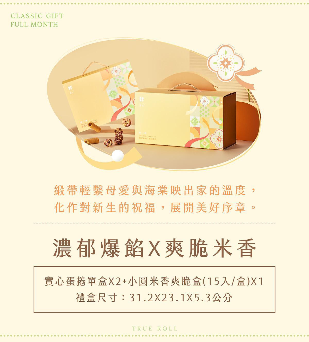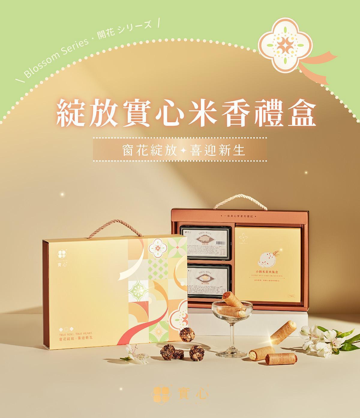 彌月禮盒-綻放實心米香(實心蛋捲4入x2+爽脆盒15入/盒)
