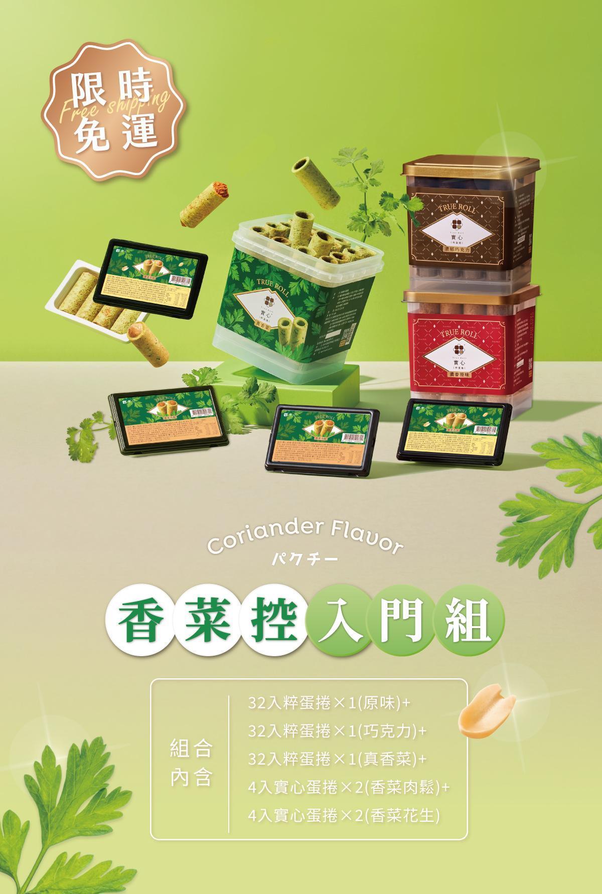 【限時免運】香菜控入門組(原味粹蛋捲x1+巧克力粹蛋捲x1+真香菜粹蛋捲x1+香菜肉鬆x2+香菜花生x2)